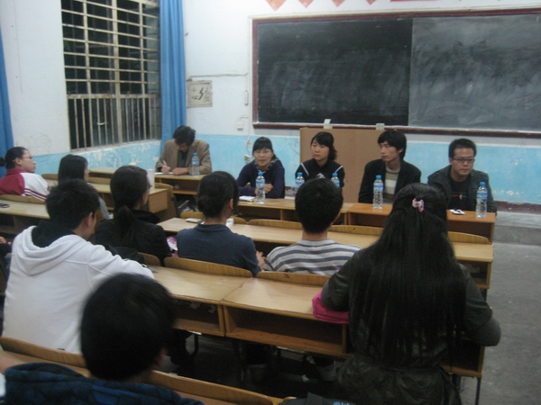 10月20日晚,数学系在2107教室召开了考研及就业座谈会,数学系教师石卫国、汪明星、王秋芬、闫莎、刘琦等五位教师及08级本科班、10级专升本学生参加了座谈会。