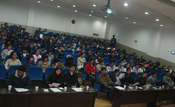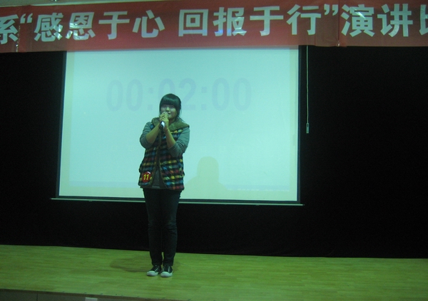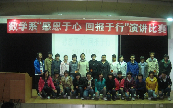 为加强大学生的感恩教育,进一步提高大学生的感恩意识,数学系于10月28日晚在一号教学楼六楼报告厅举行了感恩教育系列活动之“感恩于心,回报于行”演讲比赛。系党总支书记李延福,副主任王昭海,办公室主任何晓燕,学工办主任马新华,辅导员王宗庆、肖红香及2010级全体新生参加了此次活动。