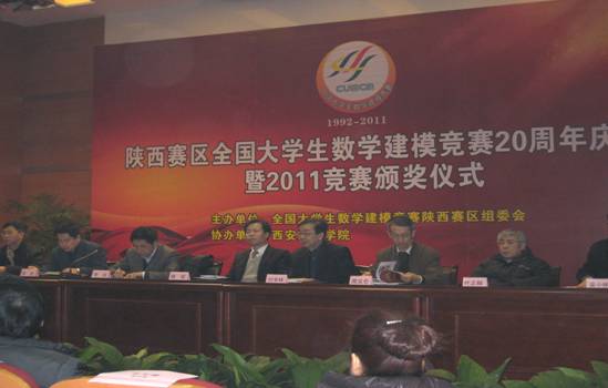 2011年12月30日,由全国大学生数学建模竞赛陕西赛区组委会主办的陕西赛区全国大学生数学建模竞赛20周年庆典暨2011年竞赛评奖大会在西安文理学院隆重举行。