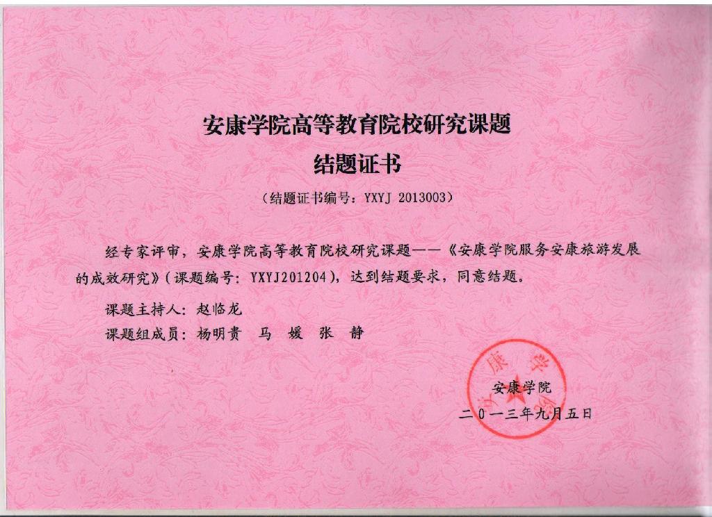 同时赵临龙教授承担的校级研究项目《安康学院服务安康旅游发展的成效研究》(课题编号YXYJ201204)也顺利通过验收评审。