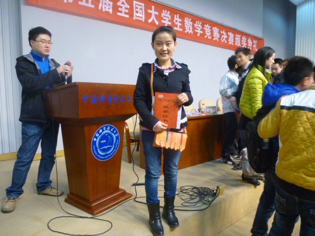 2014年3月16日,第五届全国大学生数学竞赛决赛在中国科技大学举行,经过预赛选拔共有来自北大、清华、浙大、兰大等150所高校的278名同学参加决赛。我校数学系11级师范班刘江华同学在我系王宗庆老师的带领下参加了此次竞赛并获得了数学类高年级的鼓励奖。