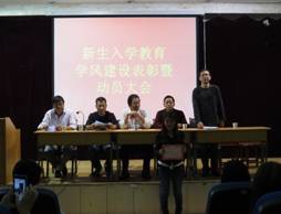 大会第二项是学风建设动员。党总支书记郭全寿发表讲话中特别强调:学风建设在全国建设中具有建设性意义。在高中时期和研究生时期人的世界观和人生观分别呈现未成形和已成型,而本科四年正是一个人世界观和人生观从未成形、未成熟到成形和成熟的时期,所以我们要从思想上提高对学风建设的认识。接着,副主任汪义瑞也对本系学风建设内容和考评办法做了介绍,他还讲到了学风建设的目标和途径,精彩的讲述博得了大家的掌声。紧接着教师代表王秋芬对数学分析这门课程的学习方法做了介绍,她指出要深刻理解才能熟练应用,在学习上要多想,多做,多总结才能提高成绩,鼓励同学们要树立目标、谨记职责。