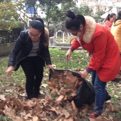2014年12月26日数学与统计系大一全体学生在江南校区第一食堂前面的花园进行义务劳动,清扫死角垃圾,共建美丽校园。