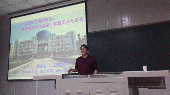 陕西省中小学幼儿园教师培训专家库首批人选专家赵临龙三级教授,为学员作了《教育科研的程序与方法》、《如何提炼教学成果奖》、《中小学小康课题申报指导》等三个专题的讲座,他针对中小学教学研究实际,结合自己多年的教学科研情况,通过案例进行有针对性的讲解和讨论,使学员对教学研究有了新的认识,并且对课题申报、论文撰写、成果奖申报的内容要求、操作程序等有了一般的了解和初步掌握。