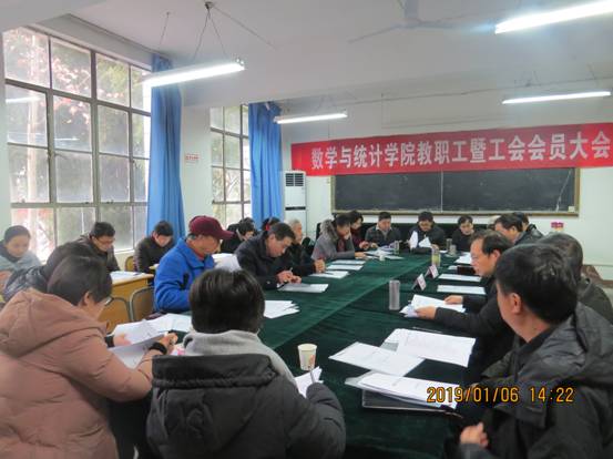 院工会主席魏春强做了题为《坚持党的领导凝聚奋进力量为数学与统计学院发展而努力》的工会工作报告和工会财务报告。报告从强化工会自身建设、做好维权与监督工作,推进民主政治建设、强化学习宣传教育工作,鼓励教职工在岗位上建功立业、关心教职工生活、积极开展文体活动,活跃职工业余生活五个方面回顾了两年工作。最后指出今后工作的思路和目标:充分发挥工会的主观能动性,进一步强化大局意识、责任意识和服务意识,牢牢把握工作的正确方向和围绕中心、服务大局的切入点、着力点,紧紧抓住民主建设、建功立业、维权帮扶、服务职工、自身建设几个重点领域,凝心聚力,负重奋进,为数学与统计学院发展而努力。