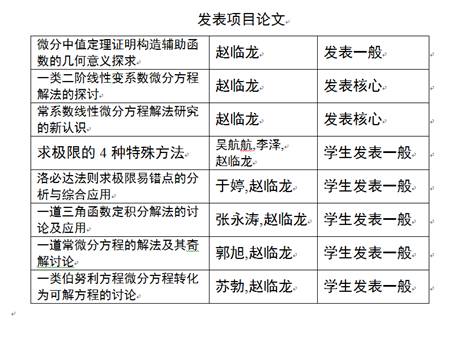 》教学案例,在学校首届课堂教学创新大赛中获得三等奖;主持人赵临龙教授相关的教学成果《常微分方程课程的“学习+研究”教学模式的构建与实践》在新工科背景下大学数学课程及教材建设研讨会做大会报告;同时,教师发表项目研究论文3篇(其中核心2篇),学生发表项目研究论文5篇。