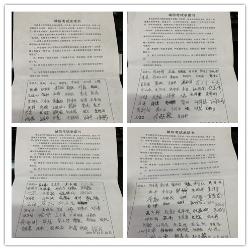 在主题班会上,马新华老师和郑冉老师从考试风气、考试纪律等方面做出要求。其中,不仅强调了遵守考风考纪的重要性,而且向同学们明确说明违反考风考纪所面临的严重后果。同时,要求同学们认真学习《学生手册》中“关于严肃考风考纪,加强考试管理的相关规定”的内容,随后各班同学积极签署了《诚信考试承诺书》。两位老师对同学们寄予厚望,希望同学们可以积极备考,诚信参考,考出自己的真实水平,切勿触碰作弊这一道德高压线。