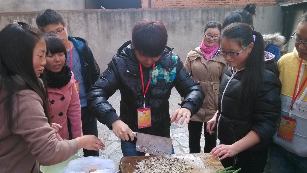 同学们认真的帮老人打扫了起居室、厨房、院落,并搀扶老人晒太阳,主动和他们聊天,嘘寒问暖,贴切的为老人修整手指,和老人一起唱歌,他们脸上洋溢着温馨幸福的笑容。随后,同学们拿出买好的食材,齐心协力为老人包了饺子。老人们用祥和的微笑送走了同学们。