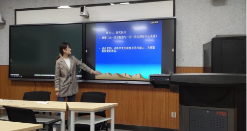 此次大赛是继教育见习、微格教学训练后的一次学生教学技能的展示与检阅。通过前期分组预赛产生的11名选手,经过即席演讲、说课、模拟授课三个环节的比赛。随后,汉滨初级中学特级教师张朝青老师对本次活动做了点评,指出学生一定要注意课程的设计、教学内容的衔接等要点。最后,由数统学院副院长成波教授对本次大赛进行总结。
