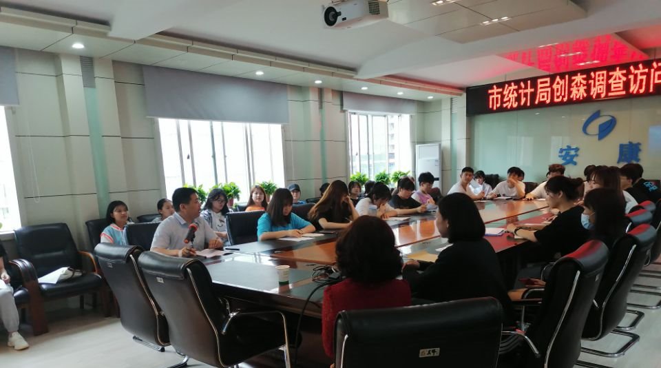2021年5月8日,统计系主任徐龙华、教师黄兆霞博士带领统计学2020级学生赴安康市统计局开展以“提升统计学学生统计分析、实践能力”为主题的交流活动,此次交流活动在安康市统计局会议中心开展,安康市社情民意调查中心工作人员王芳芳参加了本次会议,会议由安康市统计局二级主任科员韩莹主持。