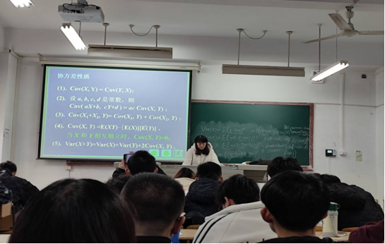 黄兆霞老师以协方差和相关系数的定义和性质为主要授课内容,用讲练结合的教学方法,深入浅出的讲解了协方差和相关系数的计算方法,并通过问题驱动不断调动学生的学习积极性,让学生参与到课堂活动中,发挥学生的主体作用。