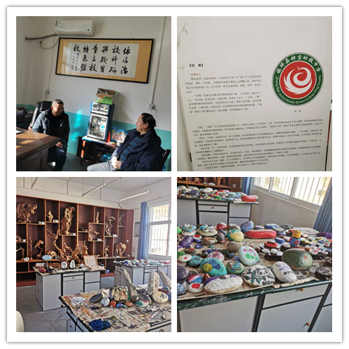 12月9,到“自然国心”鸡心岭区域的钟宝镇初级中学,与校长龙勇、副校长江华进行座谈,了解学校发展情况,交流科普旅游。该校充分利用“自然国心”爱国教育资源,创意校徽“金鸡”(鸡心岭)表意,并且围绕镇坪山水自然优势,开展科技活动,形成学生树木根塑、河石绘画等旅游工艺观赏品。在龙校长的陪同下,赵临龙教授参加观了校史展室,聆听了校歌,观赏了学生的旅游工艺展品。
