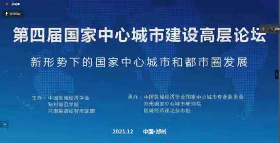 2021年12月20日,由中国区域经济学会、郑州师范学院等单位主办的第四届国家中心城市建设高层论坛“新形势下的国家中心城市和都市圈发展”学术会议,在郑州师范学院主会场通过线上线下形式举行,全国200多名代表参加会议,我院赵临龙教授和部分学生通过线上在安康学院参加会议。