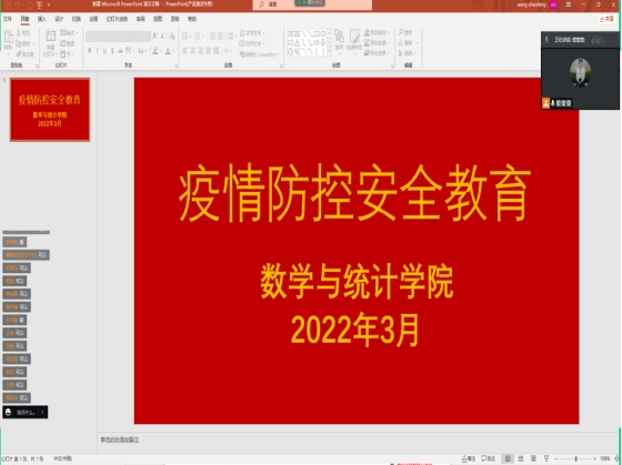 数统学院高度重视疫情防控工作,积极引导学生心理上和行为上的重视。本次班会不仅让同学们了解了最新的疫情防控相关政策要求,也增强了同学们的疫情防控意识和安全意识,进一步促进了学生们身心的健康成长。