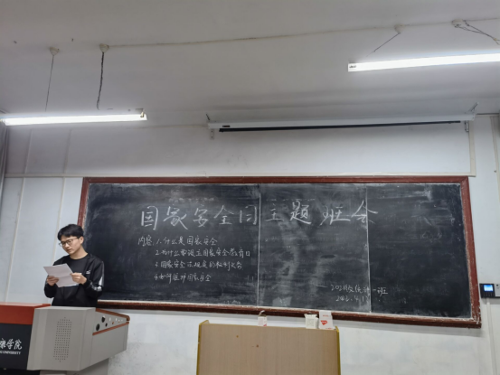 为迎接我国第七个“415”国家安全教育日,也为推动社会主义现代化建设,深入贯彻习近平新时代中国特色社会主义思想,加强同学们的安全意识,2022年4月13日晚上7点,数统学院各班在教室举办了以“国家安全教育日”为主题的主题班会活动,班级成员积极参与,班会取得良好效果。