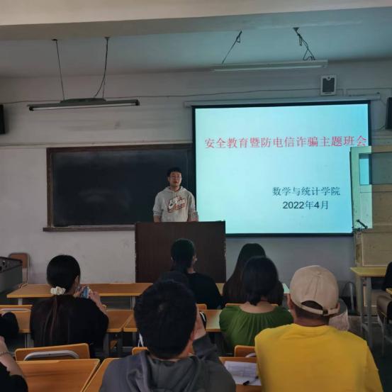 4月28日,数统学院以线上线下结合的方式分批次、分班级召开“五一”安全教育暨谨防电信诈骗主题班会。