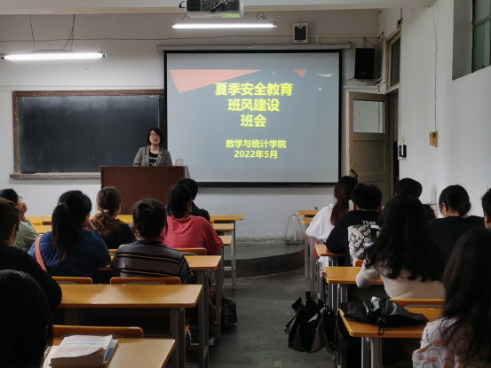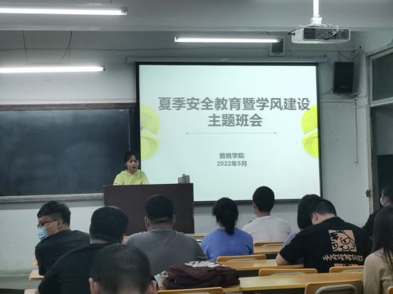 炎热的夏天已经到来,为了让同学们有充沛的精力学习,以更积极的心态健康生活,数统学院辅导员董婷瑜、刘佩、马勇于2022年5月18日至19日分班分批次召开夏季安全教育暨学风建设主题班会。