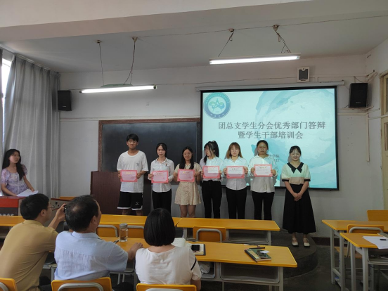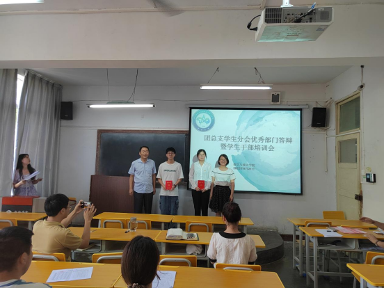 为进一步加强我院团总会学生分会自身建设,增强学生会干部的自我教育、自我管理、自我服务、自我监督的意识,提高学生会干部队伍的整体素质。2022年6月21日下午,数学与统计学院在2203教室举办了团总支学生分会优秀部门答辩暨学生干部培训会,数统学院党总支书记郭全寿、学工办主任董婷瑜、团总支书记刘佩、2021级辅导员马勇出席并担任本次大会的评委。