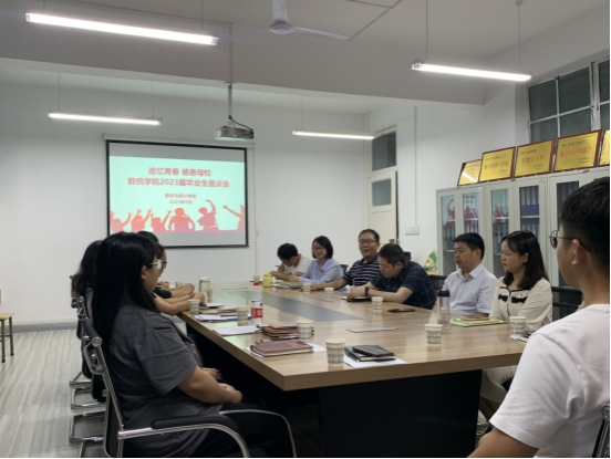 为切实做好2023届毕业生离校教育、管理和服务有关工作,积极营造文明和谐的校园氛围,确保毕业生文明、温暖、安全离校,6月27日下午,数学与统计学院在2207会议室召开2023届毕业生座谈会。座谈会以“追忆青春 感恩母校”为主题,旨在激发毕业生的爱校荣校意识和校友意识,激励毕业生铭记校风校训,以使命感和责任感,助力实现梦想。学院党总支书记郭全寿、院长成波、副院长徐龙华,学工办主任董婷瑜、毕业班辅导员刘佩和马勇、2023届毕业生和低年级学生代表参加了座谈。座谈会由毕业班辅导员马勇主持。
