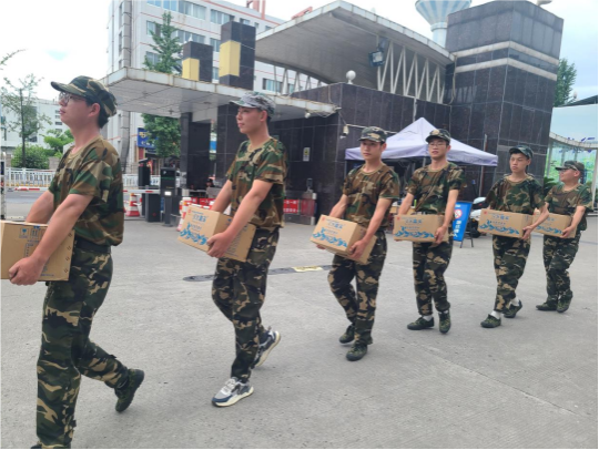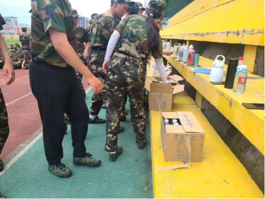 劳累的军训课程结束后,迎来了同学们最为期待的休息时间。在这种炎热的天气中,刚刚毕业的学长学姐亲切地为我院军训学员们送水,在线温暖学弟学妹们的心。同学们对学长学姐表示了真挚的感谢,因为这是在炎炎夏日中吹动他们的一缕微风,并且温暖着所有同学的心。