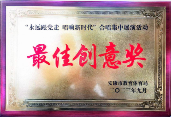追忆峥嵘岁月,铭记光辉历程。2023年9月24日上午,由安康市教育体育局主办的安康市大中小学“永远跟党走 唱响新时代”合唱展演在安康市体育馆举行,来自12所学校的两千余名师生用青春激情共唱音乐史诗《长征组歌》,给人带来了一场红色视听盛宴。数统学院应汉滨初中邀请参演的《长征组歌·突破封锁线》合唱曲目斩获最佳创意奖。