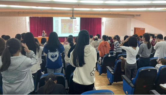 李爱霞以自己亲身教学经历,从“中学数学当前面临的主要教育形式”、“当一个有影响力的教师”、“班主任管理”和“让学生学起来”等方面进行了详细讲述。李老师的讲座朴实精彩,贴近现实,举例丰富,全程座无空席,会场气氛活跃,报告结束后部分同学和李老师进行了交流互动。