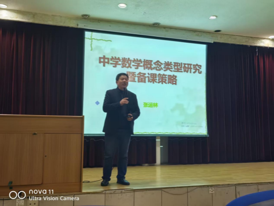 为了进一步加快我院数学与应用数学专业学生的专业成长,更加深刻理解中学数学中的概念教学的重要作用,2023年11月22日晚,数学与统计学院于江南校区一号楼报告厅举办了第二届中学数学卓越教师培养专题讲座第五讲。此次讲座以“中学数学概念类型研究及备课策略”为主题,由高级教师、陕西省“优秀教研员”、陕西省“名师大棚车”专家团队成员、安康市“阳光师训”专家团队成员张运林担任主讲人。数学与统计学院第二届中学数学卓越教师培养班全体学生参加了本次讲座,数学与统计学院副院长徐龙华出席此次讲座,讲座由卓越教师培养班班主任魏春强老师主持。