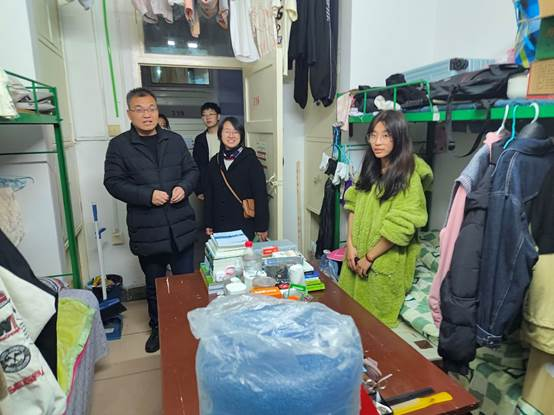 随着冬季的来临,为确保学生宿舍的安全,以及关心学生的学习生活情况,11月25日晚七点,数学与统计学院党总支副书记杨高翔、辅导员董婷瑜、马勇带领部分学生干部开展了冬季学生宿舍安全检查。此次行动旨在排查冬季用电安全隐患,以及了解学生们的学习和生活情况。