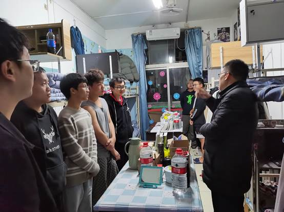 在走访过程中,杨高翔和辅导员们逐一走访了各个寝室,仔细检查了寝室内的电器设备,并亲切地询问了同学们的学习规划和生活情况,勉励大家要重视学业,努力营造良好的学习氛围。同时,他们也强调了寝室的卫生和纪律,希望学生们能够保持一个良好的生活环境。