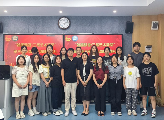 6月27日学院举行“翰墨飘香,三笔艺术荟萃”三笔字书法比赛颁奖典礼,数学与统计学院党总支书记储玖琳,团总支书记马勇、辅导员刘佩参加了本次颁奖典礼。