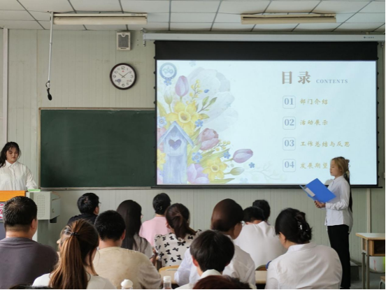 团总支学生会各个部门依次上台展示一年来的工作成果和亮点。