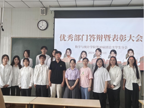 2024年6月25日,数学与统计学院团总支在1024教室举行了优秀部门答辩暨表彰大会。学院团总支书记马勇、行政科研秘书卢欣,辅导员刘佩出席并担任本次大会的评委。