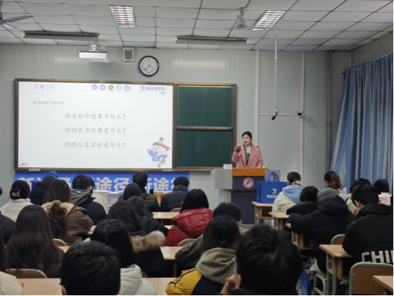 为扎实推进我院2026届毕业生就业指导工作,拓宽毕业生职业发展渠道,我院于2025年12月18日举办就业指导与公招考试专题宣讲会。宣讲会由毕业班辅导员马勇主持,新途径职教知名讲师主讲,2022级、2023级共计80余名学生参加。