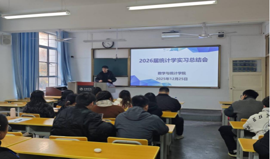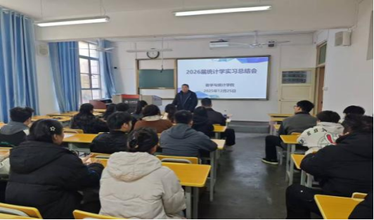 2025年12月25日,数学与统计学院2026届统计学毕业实习实习总结会顺利召开。副院长徐龙华、实习带队教师杜贵春、辅导员马勇出席会议。全体实习学生参会,共同回顾实习历程,分享收获感悟。