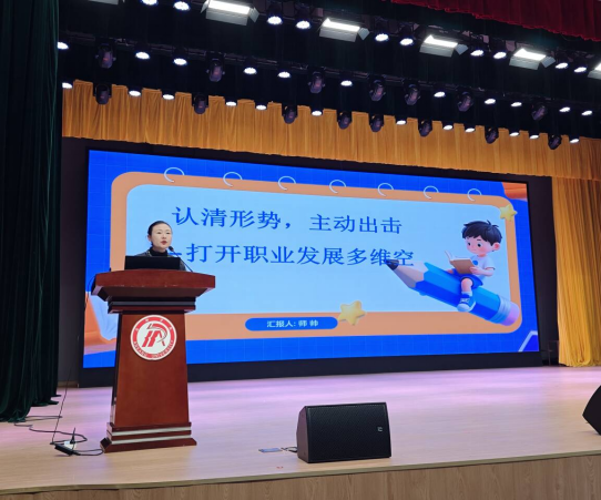 随后,学院副院长徐龙华结合近期校园招聘动态与毕业生求职进展对就业形势进行了具体分析。他强调,面对日益激烈的就业竞争,毕业生应立足专业、放眼长远,尤其要重视高中教师资格证的考取。徐院长指出,教师资格证不仅是从事教育行业的必备资格,也是体现综合素质、增强就业韧性的重要途径,鼓励有意向进入教育领域的同学积极备考、争取早日持证。